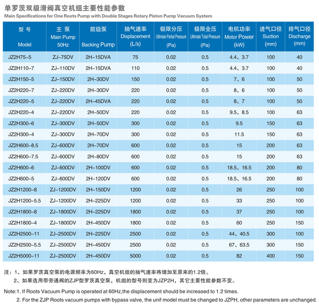 羅茨滑閥真空機(jī)組點(diǎn)連接可查機(jī)型配組和各類參數(shù):